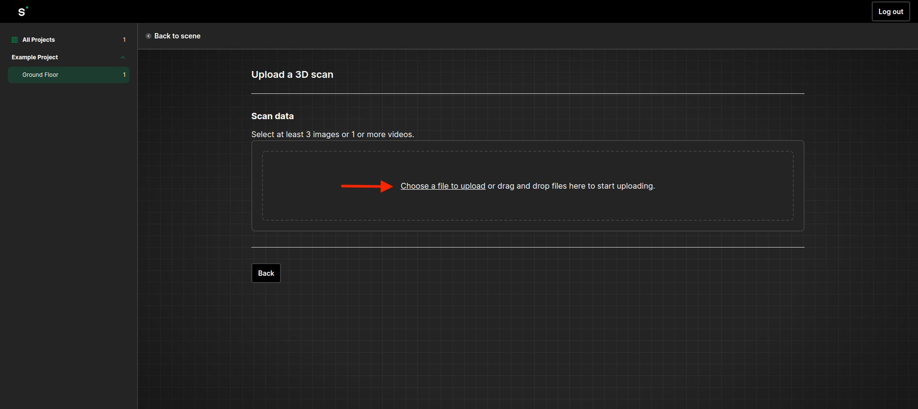 Upload the video files from the camera.  <mark style="color:red;">**All videos or images uploaded together must be part of the same continuous capture.**</mark>  Do not upload separate captures with different target locations to be processed in the the same scan. &#x20;